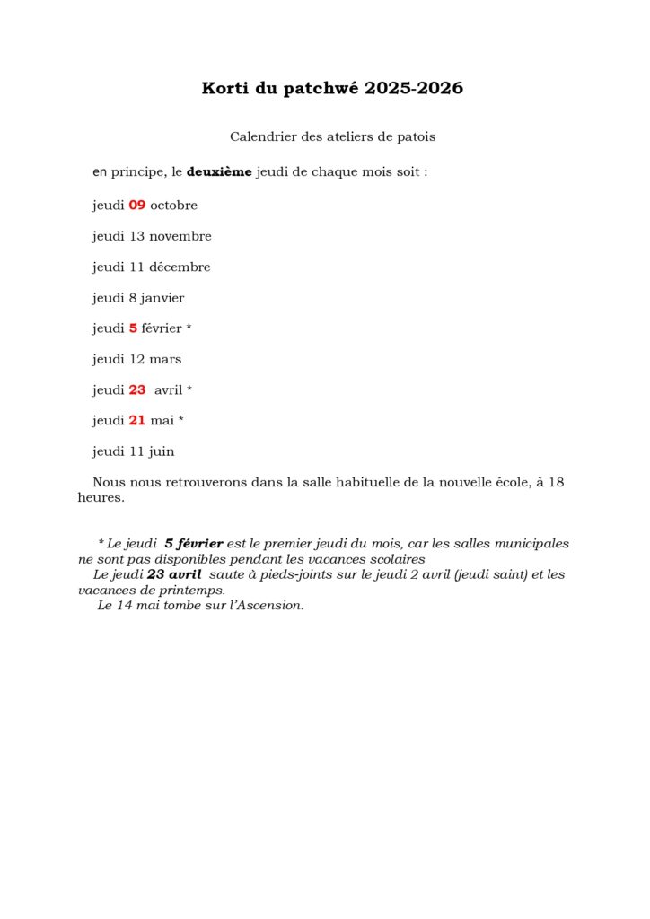 Découvrez ci-dessous le calendrier pour l’année 2025-2026.